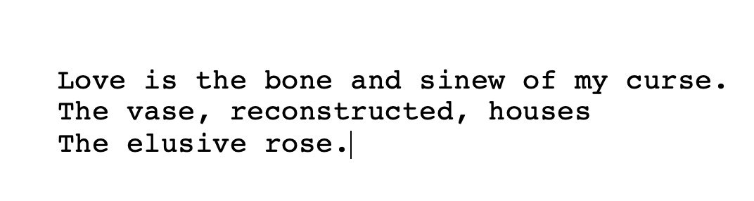 How does Woolf do it? How does Lawrence do it? I come down to learn of those two: Lawrence, because of the rich physical passion – fields of force – and the real presence of leaves and earth and beasts and weathers, sap-rich, and Woolf because of that almost sexless, neurotic luminousness – the catching of objects: chairs, tables & the figures on a street corner, and the infusion of radiance: a shimmer of the plasm that is life.
