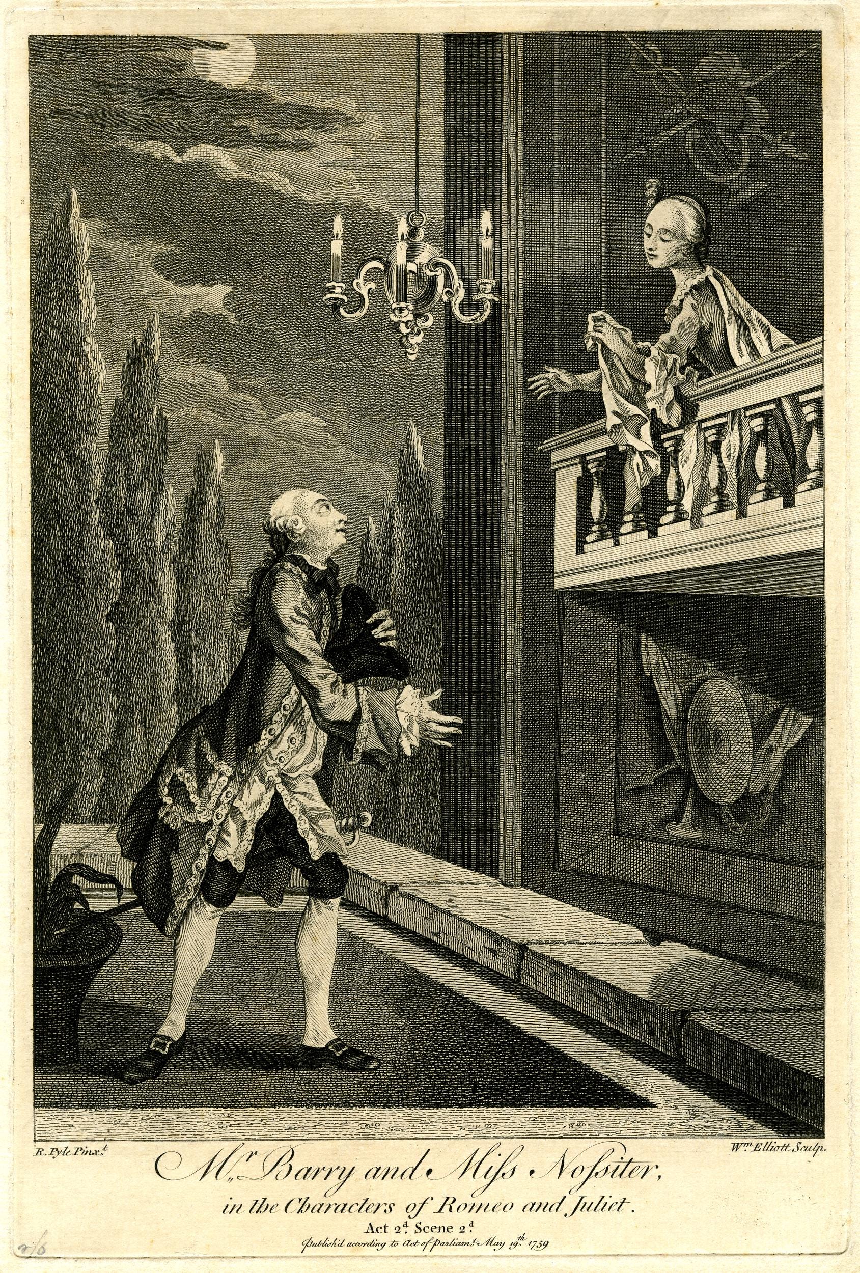 When I was the Shakespeare professor at Warwick University, I started using the Romeo and Juliet song as a teaching tool. That balcony, for example. Try to find it in the original text. There is no balcony, only “But soft, what light through yonder window breaks? / It is the east and Juliet is the sun.” The boy actor playing Juliet would have been on the upper stage area, which in the Elizabethan theatre often represented an upper floor window (think of Jessica’s escape in The Merchant of Venice), but there wouldn’t have been a balcony with a balustrade. That was introduced in the eighteenth century, most famously in a Drury Lane stage production by David Garrick. Telling this story was a good way of showing students how Shakespeare has been changed and adapted down the ages.